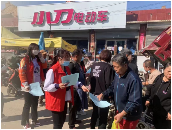 (图为怀安县第六屯乡志愿者向群众发放基层服务平台明白纸)